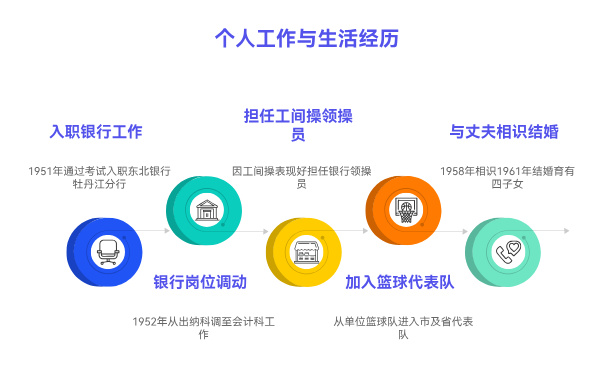 1951年 17歲 通過考試進(jìn)入東北銀行(人民銀行前身),被分配至牡丹江,在出納科做點(diǎn)鈔工作。