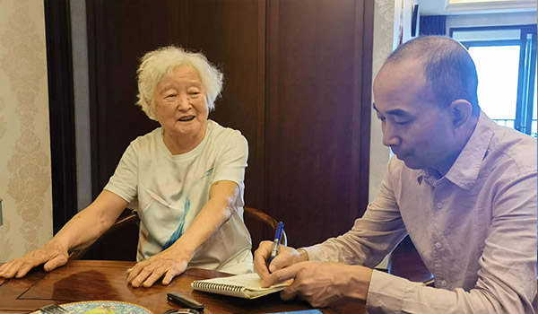圖為開寫傳記陳老師和王岫巖老人聊天中