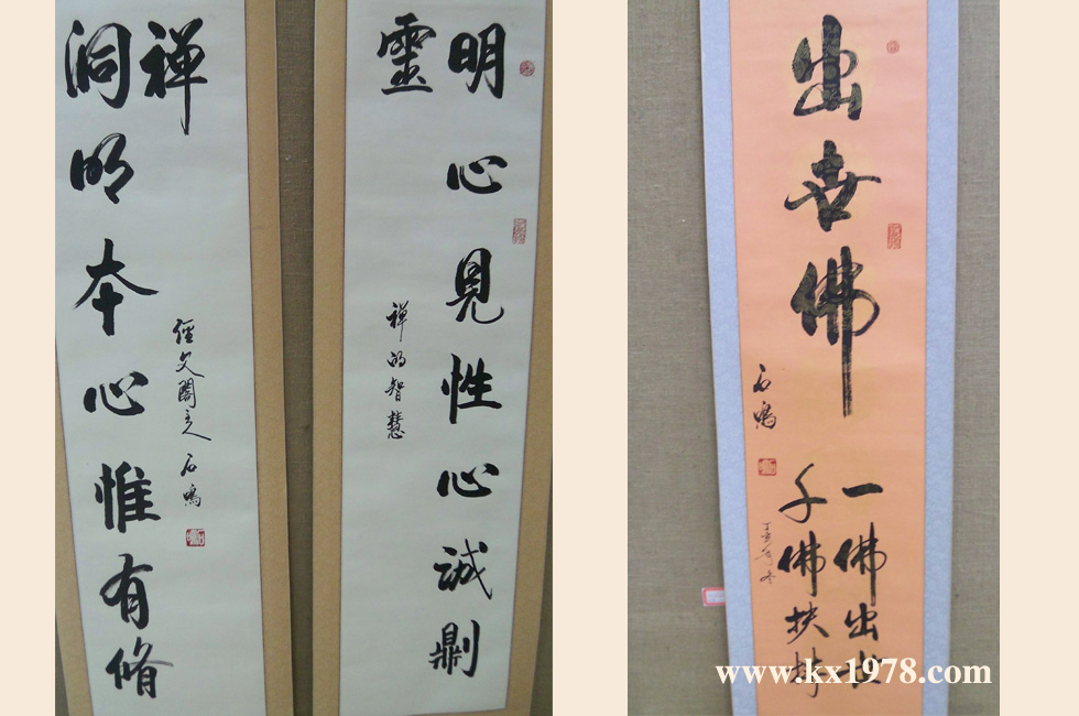 (圖為香港文化人書法家石鳴先生佛教書法作品。開寫傳記定制創(chuàng)始人陳駿拍攝)