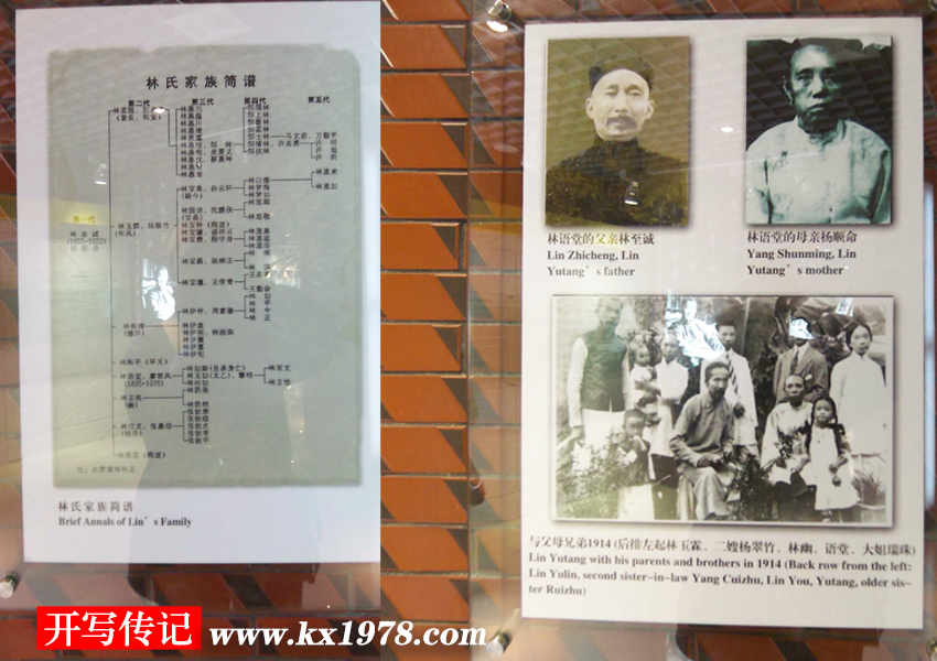 Lin Yutang' s father Lin Zhicheng spent his childhood and youth in Wulisha,once worked as a pedlar, was admitted into the divinity school at 24, and later becamea pastor. He was sent to Banzi,Pinghe to carry on missionary work. Lin Yutang smother Yang Shunming was born into a poor family and was an honest countrywoman. There were eight sons and daughters in the family, and Lin Yutang was theseventh child and fifth son.