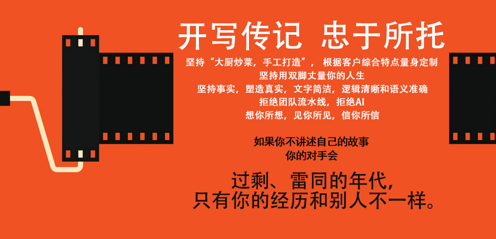 開寫傳記認(rèn)為:代寫回憶錄是功德之事,無德之人做不好,做不長。開寫傳記不僅對客戶負(fù)責(zé),更對客戶的讀者負(fù)責(zé),為幾十年后的讀者負(fù)責(zé);堅(jiān)持共情敬畏的價(jià)值觀;堅(jiān)持“史官、偵探、煉金術(shù)士”的角色定位;堅(jiān)持三種視角面對客戶:仰視、平視和俯瞰;不過度承諾,不敷衍客戶;堅(jiān)決“用雙腳丈量你的人生”,一步一個(gè)腳印,走完你的一生的地理坐標(biāo),想你所想,見你所見,信你所信,重現(xiàn)你人生中的難忘場景;堅(jiān)持內(nèi)容真實(shí)、文字簡潔、邏輯清晰和語義準(zhǔn)確,這條看似簡單的“堅(jiān)持”,至少會困住市場上一半的回憶錄作者。