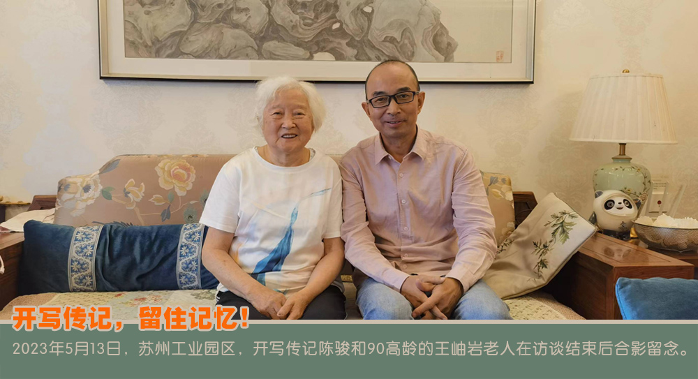2023年5月12日、13日,開寫傳記陳駿前往蘇州工業(yè)園區(qū),和耄耋老人王岫巖面對(duì)面交流。在兩天的初次訪談中,老人精神矍鑠,紅光滿面,十分健談,根本不像90高齡的老人,倒像是70來歲。